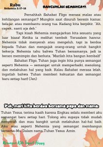 Sahabat Fligo, Tuhan juga ingin kita punya semangat seperti Nehemia — semangat untuk memperbaiki, menolong, dan melakukan hal yang baik. Kalau Sahabat merasa lelah, ingatlah bahwa Tuhan memberi kekuatan dan semangat baru setiap hari! (Jen)