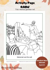 Pada saat itu ada seorang pria bernama Nehemia, dia berada jauh dari kampung halamannya. Dia mendengar bahwa kota Yerusalem runtuh, bahkan pintu-pintu gerbangnya habis dimakan api karena diserang oleh musuh. Lalu Nehemia berdoa kepada Tuhan dengan sedih hati karena kotanya yang dahulu megah, sekarang sudah hancur.