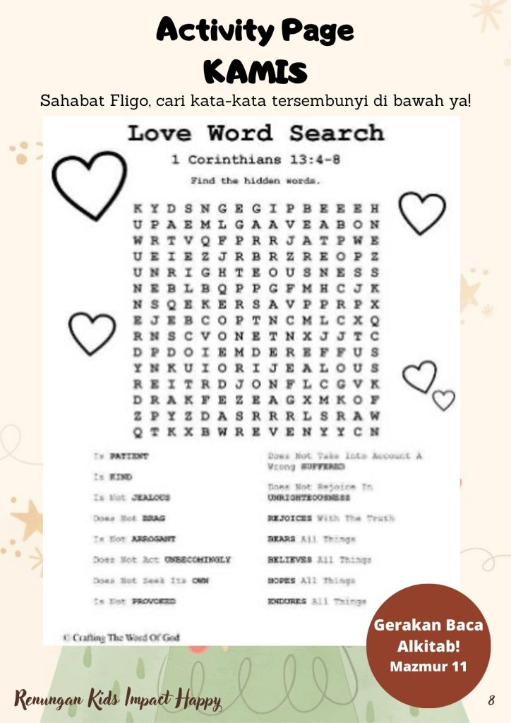 Begitu juga Tuhan Yesus. Walaupun kita kadang nakal, malas berdoa, atau suka marah, Tuhan Yesus tetap mengasihi kita. Kasih-Nya tidak berhenti hanya karena kita berbuat salah. Ia menerima kita apa adanya, dan bahkan rela mati di kayu salib supaya kita bisa dekat dengan-Nya.