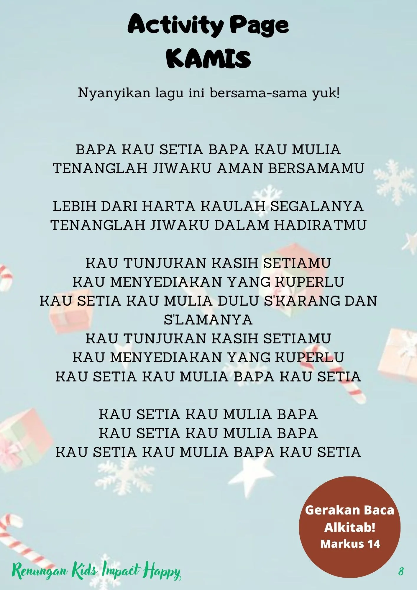 Terima kasih Tuhan buat kasih setia-Mu. Kami mamu selalu mengingat kebesaran Tuhan yang ajaib dalam hidup kami. Tuhan sertai kami selalu ya. Haleluya. Amin.