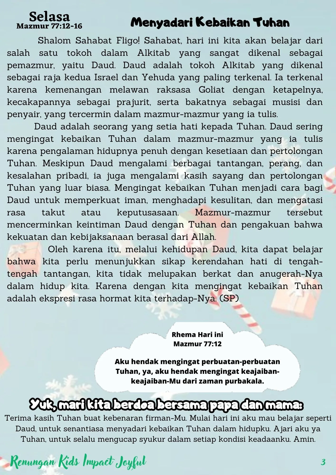 Tuhan Yesus, terima kasih untuk kelahiran-Mu. Terima kasih sudah menebus setiap dosa kami. Kami mau menyambut-Mu dengan penuh sukacita. Dalam nama Yesus kami berdoa. Amin.