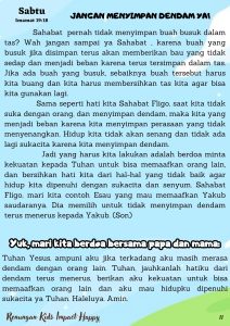Sama seperti hati kita Sahabat Fligo, saat kita tidak suka dengan orang, dan menyimpan dendam, maka kita yang menjadi beban karena kita menyimpan perasaan yang tidak menyenangkan. Hidup kita tidak akan senang dan tidak ada lagi sukacita karena kita menyimpan dendam.