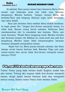 Sejak hari itu, Sinta punya banyak sahabat, dan Rani belajar untuk berani berbuat baik. Sahabat Fligo yuk ajak temen-temen kita untuk tidak ikut-ikutan menjauhi teman lainnya. (YLD)