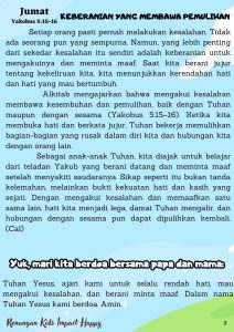 Alkitab mengajarkan bahwa mengakui kesalahan membawa kesembuhan dan pemulihan, baik dengan Tuhan maupun dengan sesama (Yakobus 5:15–16). Ketika kita membuka hati dan berkata jujur, Tuhan bekerja memulihkan bagian-bagian yang rusak dalam diri kita dan hubungan kita dengan orang lain.