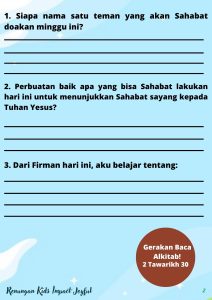 - Siapa nama satu teman yang akan Sahabatdoakan minggu ini?