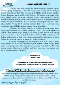 Jadi, yang paling penting bukan penampilan luar, tapi hati yang tulus, penuh kasih, dan mau menyenangkan Tuhan. Tuhan senang pada anak-anak yang baik, suka menolong, dan setia kepada-Nya. Mari kita belajar untuk tidak hanya terlihat baik dari luar, tapi juga punya hati yang baik di hadapan Tuhan. (V)