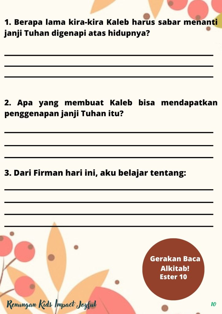 1. Berapa lama kira-kira Kaleb harus sabar menanti janji Tuhan digenapi atas hidupnya?